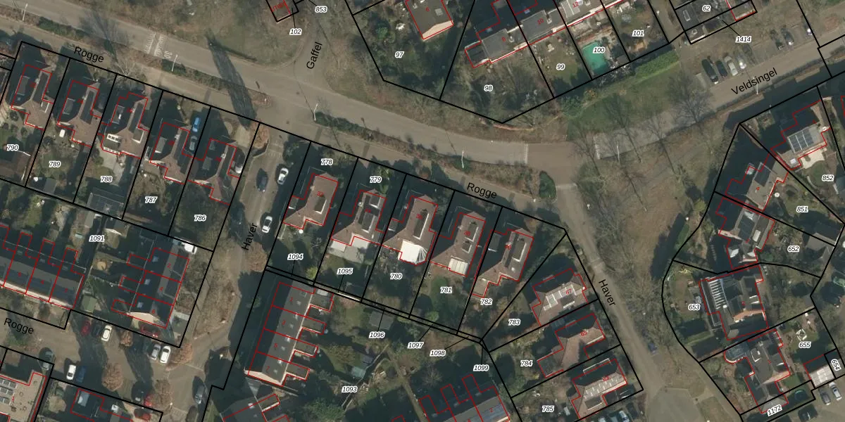 Het perceel waarop Rogge 36 staat heeft een oppervlakte van 370 m². Dit is een groot perceel. De perceeloppervlakte wordt geregistreerd door het Kadaster. Gedetailleerde informatie over de maten van dit perceel kunt u vinden in het rapport Kadastrale kaart met maatvoering van Rogge 36.