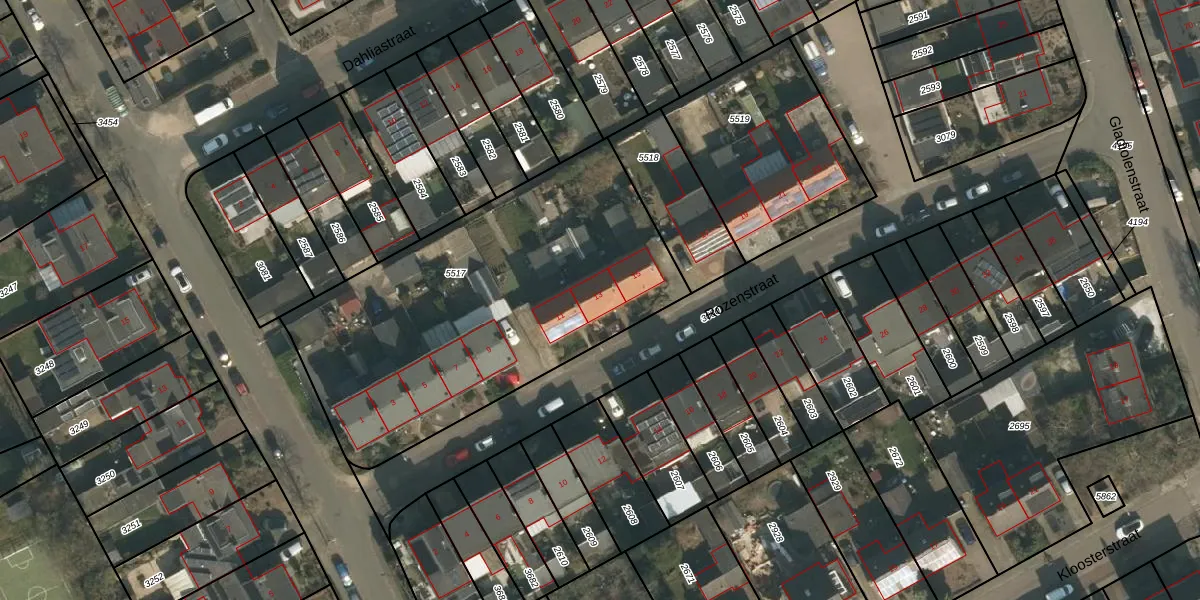 Het perceel waarop Rozenstraat 13 staat heeft een oppervlakte van 1860 m². Dit is een zeer groot perceel. De perceeloppervlakte wordt geregistreerd door het Kadaster. Gedetailleerde informatie over de maten van dit perceel kunt u vinden in het rapport Kadastrale kaart met maatvoering van Rozenstraat 13.