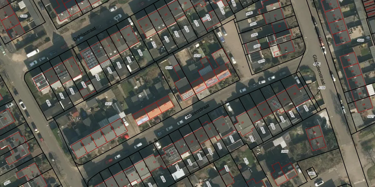 Gebruik de zoekbalk of klik op een perceel voor informatie over de adressen binnen dit perceel.