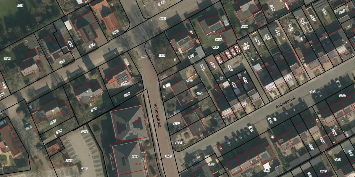 Het perceel waarop Schoolstraat 1 staat heeft een oppervlakte van 263 m². Dit is een middelgroot perceel. De perceeloppervlakte wordt geregistreerd door het Kadaster. Gedetailleerde informatie over de maten van dit perceel kunt u vinden in het rapport Kadastrale kaart met maatvoering van Schoolstraat 1.