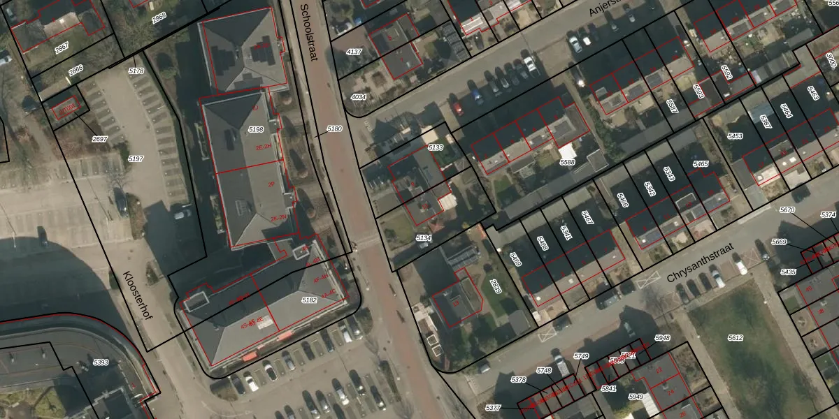 Het perceel waarop Schoolstraat 11 staat heeft een oppervlakte van 352 m². Dit is een groot perceel. De perceeloppervlakte wordt geregistreerd door het Kadaster. Gedetailleerde informatie over de maten van dit perceel kunt u vinden in het rapport Kadastrale kaart met maatvoering van Schoolstraat 11.