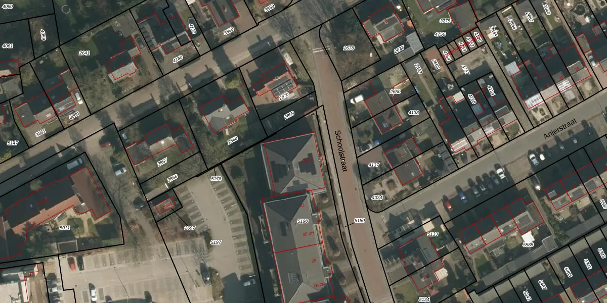 Het perceel waarop Schoolstraat 2-A staat heeft een oppervlakte van 2193 m². Dit is een zeer groot perceel. De perceeloppervlakte wordt geregistreerd door het Kadaster. Gedetailleerde informatie over de maten van dit perceel kunt u vinden in het rapport Kadastrale kaart met maatvoering van Schoolstraat 2-A.