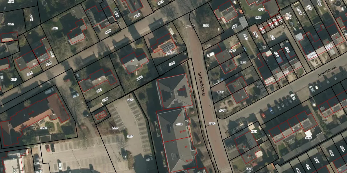 Het perceel waarop Schoolstraat 2-C staat heeft een oppervlakte van 2193 m². Dit is een zeer groot perceel. De perceeloppervlakte wordt geregistreerd door het Kadaster. Gedetailleerde informatie over de maten van dit perceel kunt u vinden in het rapport Kadastrale kaart met maatvoering van Schoolstraat 2-C.