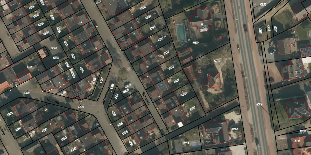 Gebruik de zoekbalk of klik op een perceel voor informatie over de adressen binnen dit perceel.