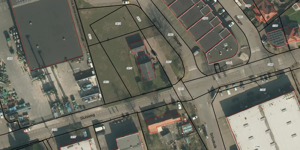 Het perceel waarop Sluisweg 16 staat heeft een oppervlakte van 1142 m². Dit is een zeer groot perceel. De perceeloppervlakte wordt geregistreerd door het Kadaster. Gedetailleerde informatie over de maten van dit perceel kunt u vinden in het rapport Kadastrale kaart met maatvoering van Sluisweg 16.