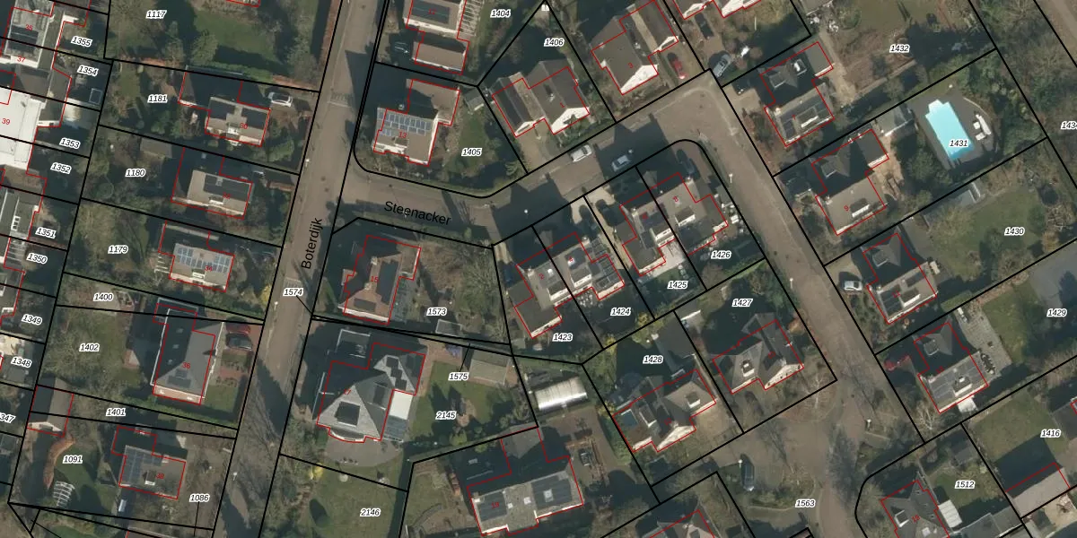 Gebruik de zoekbalk of klik op een perceel voor informatie over de adressen binnen dit perceel.
