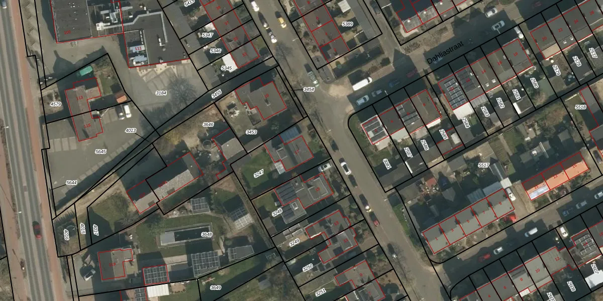 Gebruik de zoekbalk of klik op een perceel voor informatie over de adressen binnen dit perceel.
