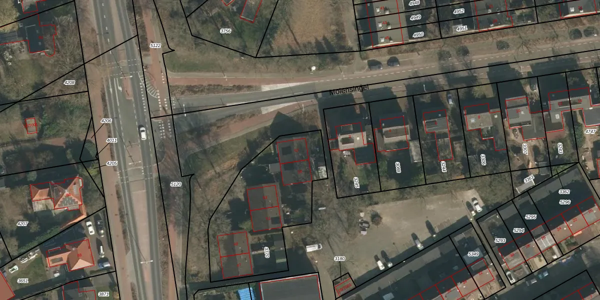 Het adres is gelegen op perceel 3770 in de sectie G en de kadastrale gemeente Heumen. De kadastrale aanduiding is aldus HMN01-G-3770. De gemiddelde perceelgrootte in Heumen is 2943,38 m². Dit perceel is kleiner: de perceeloppervlakte bedraagt 1244 m². Het grootste perceel in de kadastrale gemeente is 50,5 ha. Het kleinste perceel heeft een oppervlakte van 0 m². Op het perceel liggen in totaal 6 adressen. In de Basisregistratie Kadaster (BRK) werden de grenzen van het perceel geregistreerd op 25-11-2002.