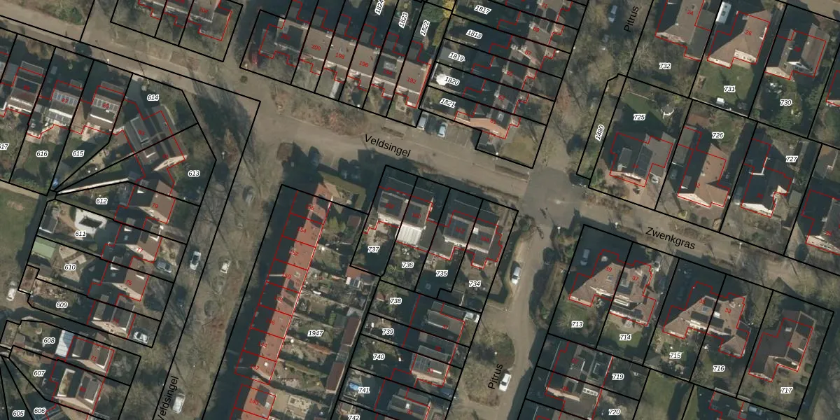 Gebruik de zoekbalk of klik op een perceel voor informatie over de adressen binnen dit perceel.