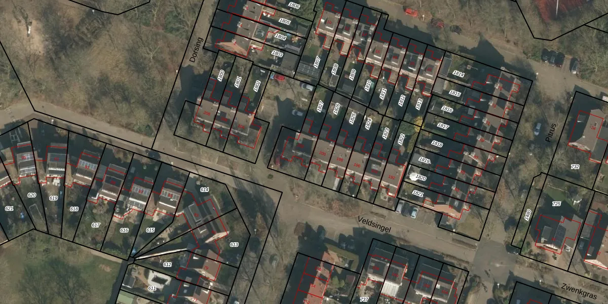 Het perceel waarop Veldsingel 202 staat heeft een oppervlakte van 285 m². Dit is een middelgroot perceel. De perceeloppervlakte wordt geregistreerd door het Kadaster. Gedetailleerde informatie over de maten van dit perceel kunt u vinden in het rapport Kadastrale kaart met maatvoering van Veldsingel 202.