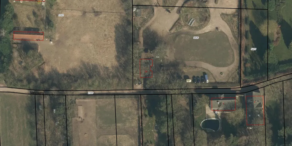 Het perceel waarop Veldweg 1-B staat heeft een oppervlakte van 4161 m². Dit is een zeer groot perceel. De perceeloppervlakte wordt geregistreerd door het Kadaster. Gedetailleerde informatie over de maten van dit perceel kunt u vinden in het rapport Kadastrale kaart met maatvoering van Veldweg 1-B.