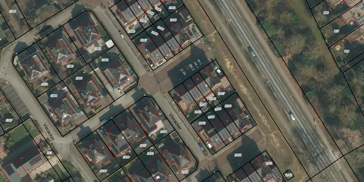 Het perceel waarop Vieracker 25-A staat heeft een oppervlakte van 194 m². Dit is een middelgroot perceel. De perceeloppervlakte wordt geregistreerd door het Kadaster. Gedetailleerde informatie over de maten van dit perceel kunt u vinden in het rapport Kadastrale kaart met maatvoering van Vieracker 25-A.