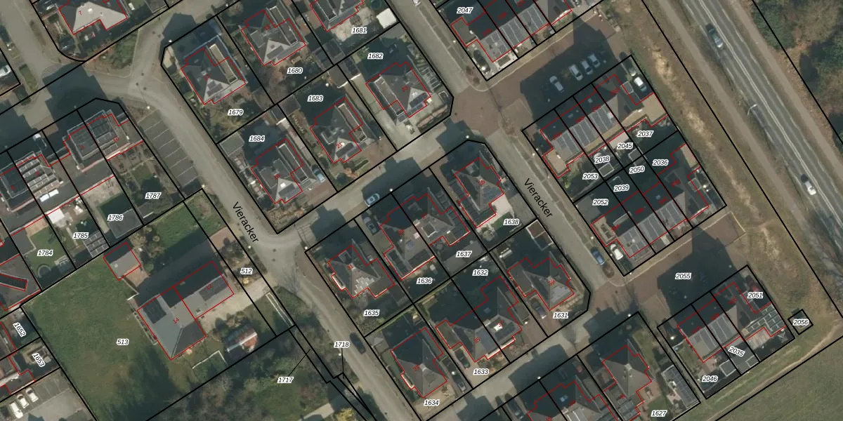 Het perceel waarop Vieracker 27 staat heeft een oppervlakte van 267 m². Dit is een middelgroot perceel. De perceeloppervlakte wordt geregistreerd door het Kadaster. Gedetailleerde informatie over de maten van dit perceel kunt u vinden in het rapport Kadastrale kaart met maatvoering van Vieracker 27.