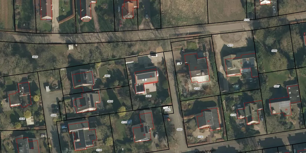 Het perceel waarop Windvleugel 25 staat heeft een oppervlakte van 895 m². Dit is een groot perceel. De perceeloppervlakte wordt geregistreerd door het Kadaster. Gedetailleerde informatie over de maten van dit perceel kunt u vinden in het rapport Kadastrale kaart met maatvoering van Windvleugel 25.