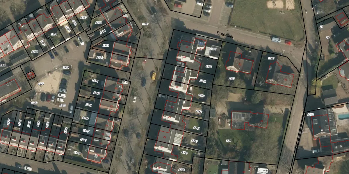 Het adres is gelegen op perceel 1363 in de sectie F en de kadastrale gemeente Heumen. De kadastrale aanduiding is aldus HMN01-F-1363. Het perceel is 266 m² groot. Dat is kleiner dan de gemiddelde perceeloppervlakte in Heumen, dat op 2943,38 m² ligt. De grootste perceeloppervlakte in de kadastrale gemeente is 50,5 ha. De kleinste oppervlakte bedraagt 0 m². Dit is het enige adres dat aanwezig is op het perceel. In de Basisregistratie Kadaster (BRK) werden de grenzen van het perceel geregistreerd op 11-02-2003.