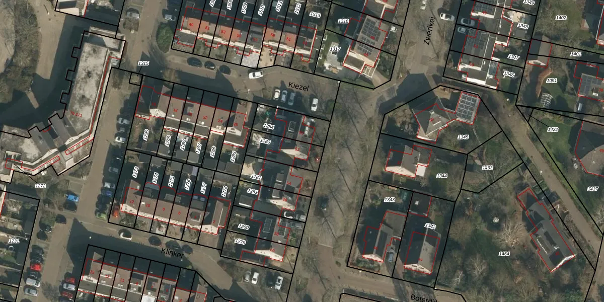 Gebruik de zoekbalk of klik op een perceel voor informatie over de adressen binnen dit perceel.