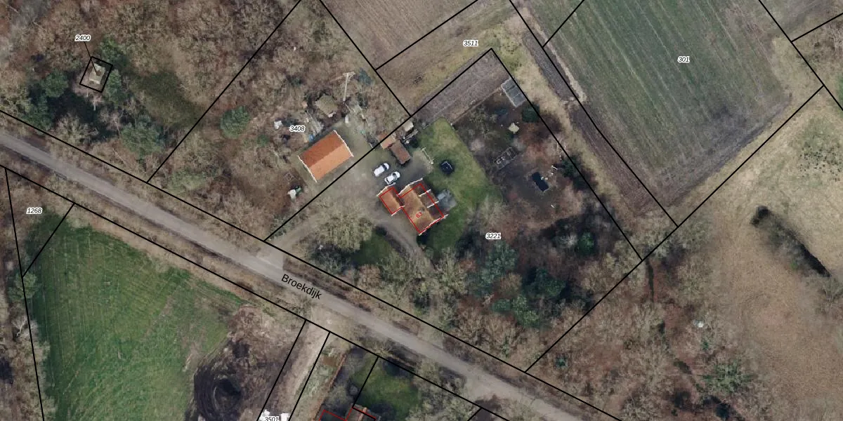 Het perceel waarop Broekdijk 63 staat heeft een oppervlakte van 3440 m². Dit is een zeer groot perceel. De perceeloppervlakte wordt geregistreerd door het Kadaster. Gedetailleerde informatie over de maten van dit perceel kunt u vinden in het rapport Kadastrale kaart met maatvoering van Broekdijk 63.