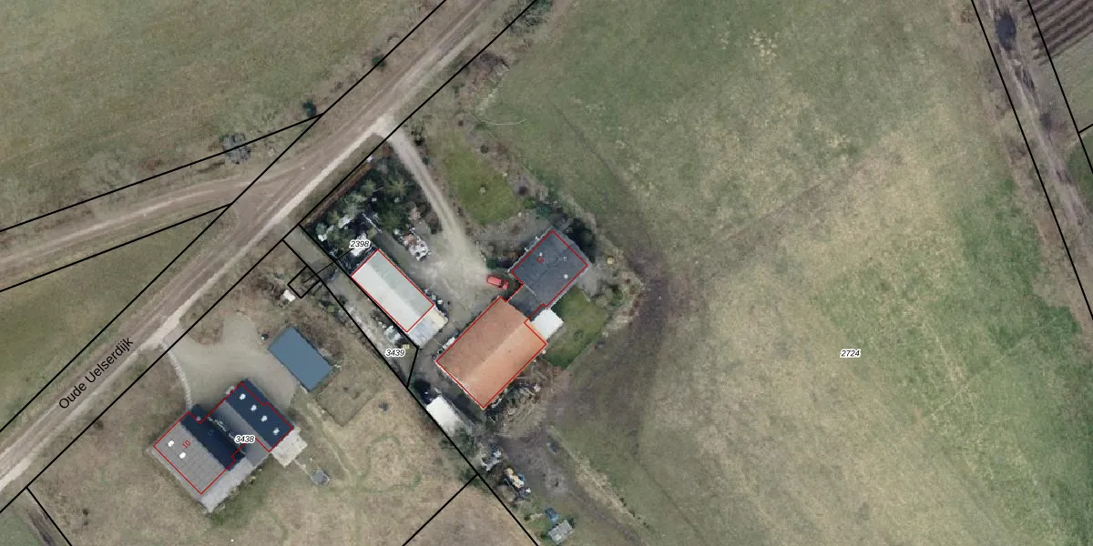 Het perceel waarop Oude Uelserdijk 12 staat heeft een oppervlakte van 1,7 ha. Dit is een zeer groot perceel. De perceeloppervlakte wordt geregistreerd door het Kadaster. Gedetailleerde informatie over de maten van dit perceel kunt u vinden in het rapport Kadastrale kaart met maatvoering van Oude Uelserdijk 12.