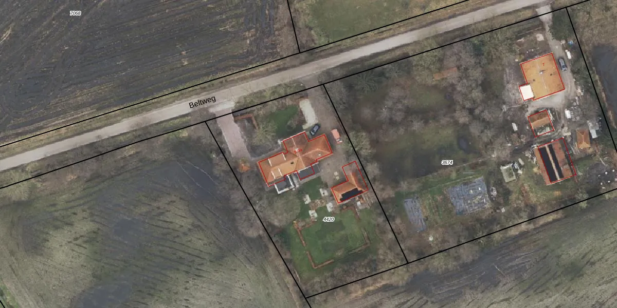 Het perceel waarop Beltweg 9 staat heeft een oppervlakte van 2480 m². Dit is een zeer groot perceel. De perceeloppervlakte wordt geregistreerd door het Kadaster. Gedetailleerde informatie over de maten van dit perceel kunt u vinden in het rapport Kadastrale kaart met maatvoering van Beltweg 9.