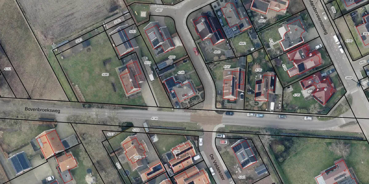 Het perceel waarop Bovenbroeksweg 35 staat heeft een oppervlakte van 483 m². Dit is een groot perceel. De perceeloppervlakte wordt geregistreerd door het Kadaster. Gedetailleerde informatie over de maten van dit perceel kunt u vinden in het rapport Kadastrale kaart met maatvoering van Bovenbroeksweg 35.