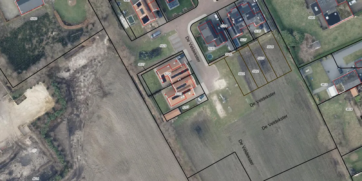 De Veldekster 12 is gelegen op kadastraal perceel TBG02B5123. Deze kadastrale aanduiding is uniek en wordt gebruikt door het Kadaster om eigendomsrechten en andere zakelijke rechten vast te leggen. Het perceel maakt onderdeel uit van de kadastrale gemeente Tubbergen.