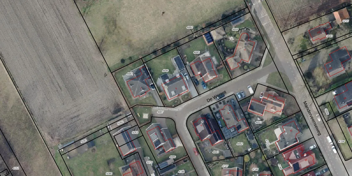 Het perceel waarop De Werent 5 staat heeft een oppervlakte van 609 m². Dit is een groot perceel. De perceeloppervlakte wordt geregistreerd door het Kadaster. Gedetailleerde informatie over de maten van dit perceel kunt u vinden in het rapport Kadastrale kaart met maatvoering van De Werent 5.