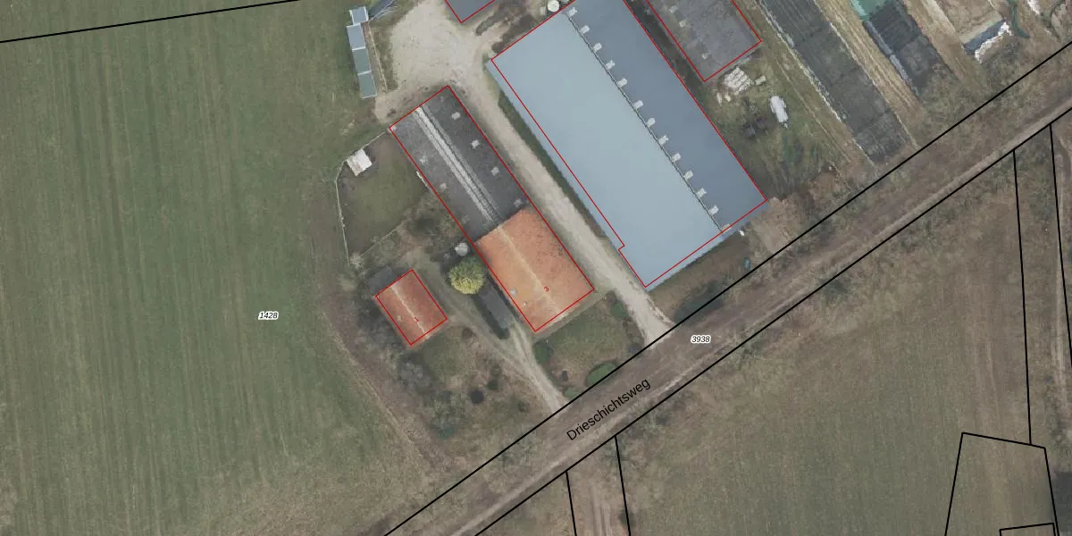 Het perceel waarop Drieschichtsweg 3 staat heeft een oppervlakte van 1,9 ha. Dit is een zeer groot perceel. De perceeloppervlakte wordt geregistreerd door het Kadaster. Gedetailleerde informatie over de maten van dit perceel kunt u vinden in het rapport Kadastrale kaart met maatvoering van Drieschichtsweg 3.