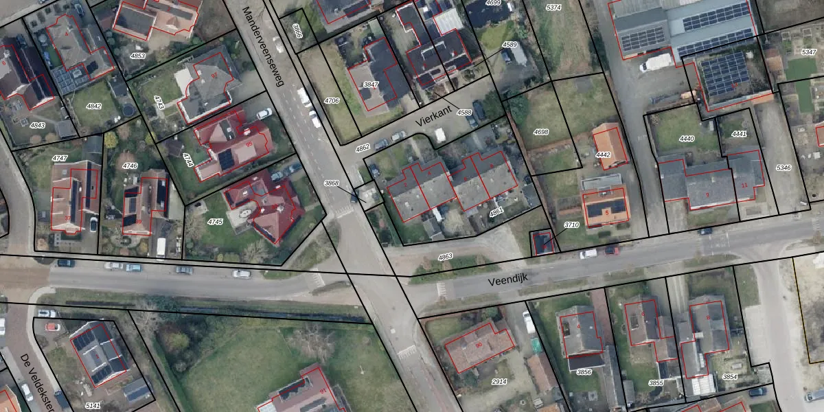 Het perceel waarop Vierkant 2 staat heeft een oppervlakte van 861 m². Dit is een groot perceel. De perceeloppervlakte wordt geregistreerd door het Kadaster. Gedetailleerde informatie over de maten van dit perceel kunt u vinden in het rapport Kadastrale kaart met maatvoering van Vierkant 2.