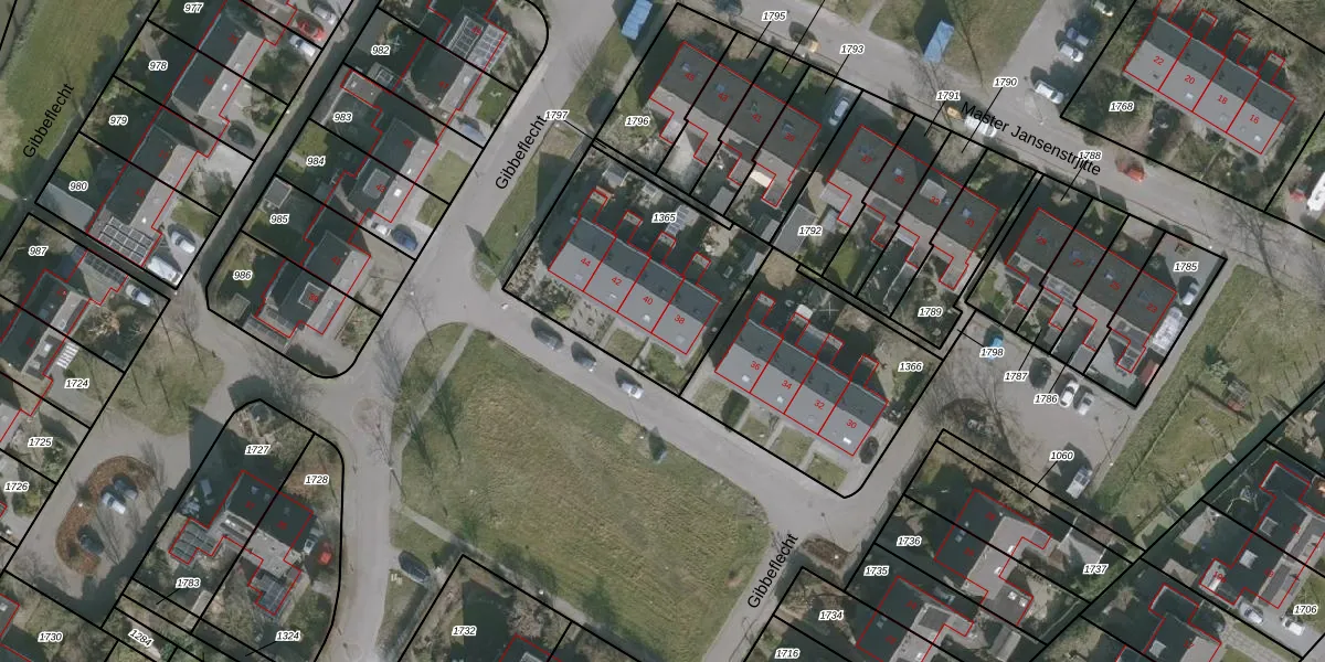 Gibbeflecht 38 is gelegen op kadastraal perceel JWD00G1365. Deze kadastrale aanduiding is uniek en wordt gebruikt door het Kadaster om eigendomsrechten en andere zakelijke rechten vast te leggen. Het perceel maakt onderdeel uit van de kadastrale gemeente Jorwerd.