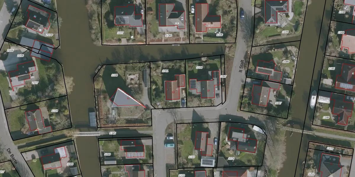 Het perceel waarop It Stalt 13 staat heeft een oppervlakte van 537 m². Dit is een groot perceel. De perceeloppervlakte wordt geregistreerd door het Kadaster. Gedetailleerde informatie over de maten van dit perceel kunt u vinden in het rapport Kadastrale kaart met maatvoering van It Stalt 13.