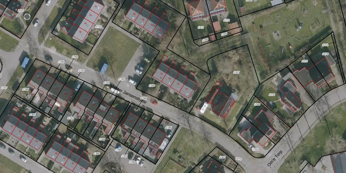 Het perceel waarop Master Jansenstrjitte 18 staat heeft een oppervlakte van 1765 m². Dit is een zeer groot perceel. De perceeloppervlakte wordt geregistreerd door het Kadaster. Gedetailleerde informatie over de maten van dit perceel kunt u vinden in het rapport Kadastrale kaart met maatvoering van Master Jansenstrjitte 18.