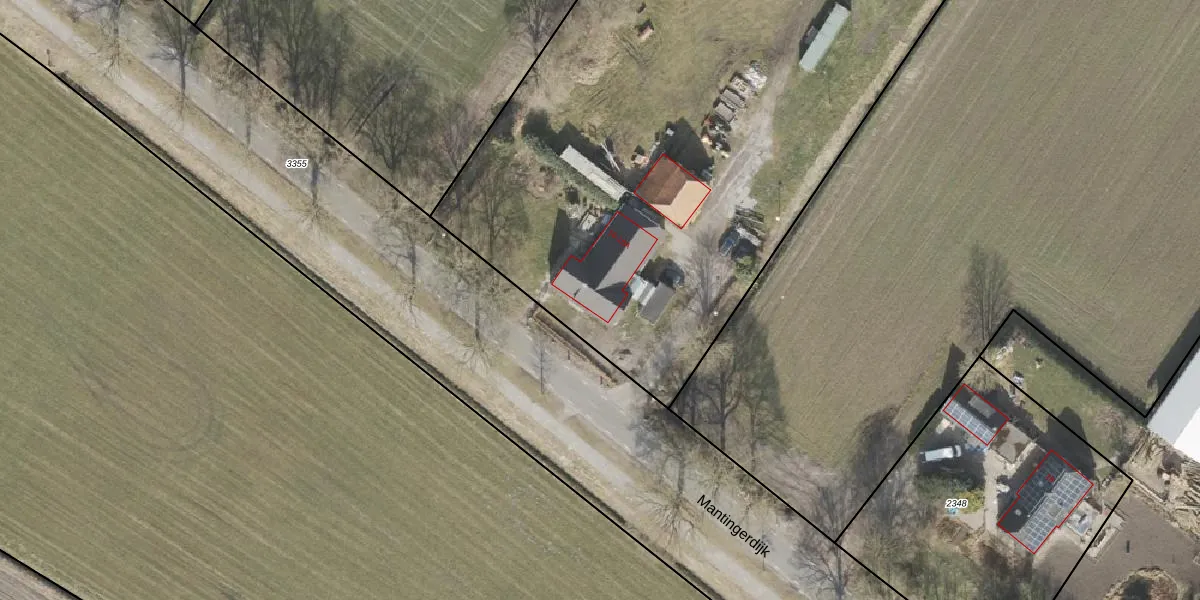 Het perceel waarop Mantingerdijk 16-A staat heeft een oppervlakte van 1,0 ha. Dit is een zeer groot perceel. De perceeloppervlakte wordt geregistreerd door het Kadaster. Gedetailleerde informatie over de maten van dit perceel kunt u vinden in het rapport Kadastrale kaart met maatvoering van Mantingerdijk 16-A.