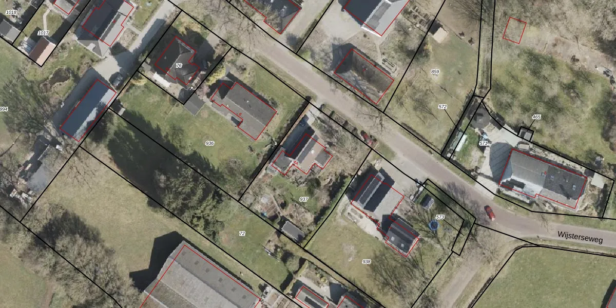 Het perceel waarop Wijsterseweg 4-A staat heeft een oppervlakte van 1030 m². Dit is een zeer groot perceel. De perceeloppervlakte wordt geregistreerd door het Kadaster. Gedetailleerde informatie over de maten van dit perceel kunt u vinden in het rapport Kadastrale kaart met maatvoering van Wijsterseweg 4-A.