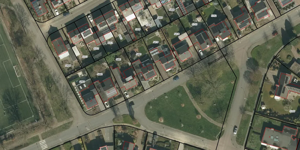 Het perceel waarop Bernhardlaan 8 staat heeft een oppervlakte van 458 m². Dit is een groot perceel. De perceeloppervlakte wordt geregistreerd door het Kadaster. Gedetailleerde informatie over de maten van dit perceel kunt u vinden in het rapport Kadastrale kaart met maatvoering van Bernhardlaan 8.