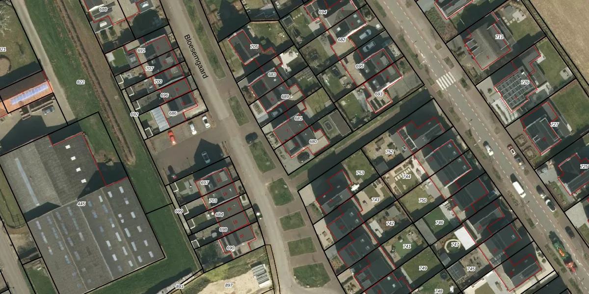 Het perceel waarop Bloesemgaard 9 staat heeft een oppervlakte van 258 m². Dit is een middelgroot perceel. De perceeloppervlakte wordt geregistreerd door het Kadaster. Gedetailleerde informatie over de maten van dit perceel kunt u vinden in het rapport Kadastrale kaart met maatvoering van Bloesemgaard 9.