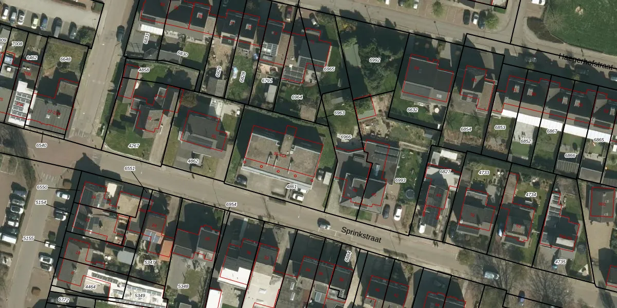 Het perceel waarop Sprinkstraat 35-A staat heeft een oppervlakte van 870 m². Dit is een groot perceel. De perceeloppervlakte wordt geregistreerd door het Kadaster. Gedetailleerde informatie over de maten van dit perceel kunt u vinden in het rapport Kadastrale kaart met maatvoering van Sprinkstraat 35-A.