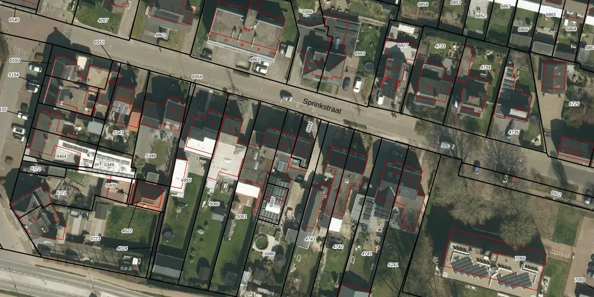 Het perceel waarop Sprinkstraat 38 staat heeft een oppervlakte van 100 m². Dit is een middelgroot perceel. De perceeloppervlakte wordt geregistreerd door het Kadaster. Gedetailleerde informatie over de maten van dit perceel kunt u vinden in het rapport Kadastrale kaart met maatvoering van Sprinkstraat 38.