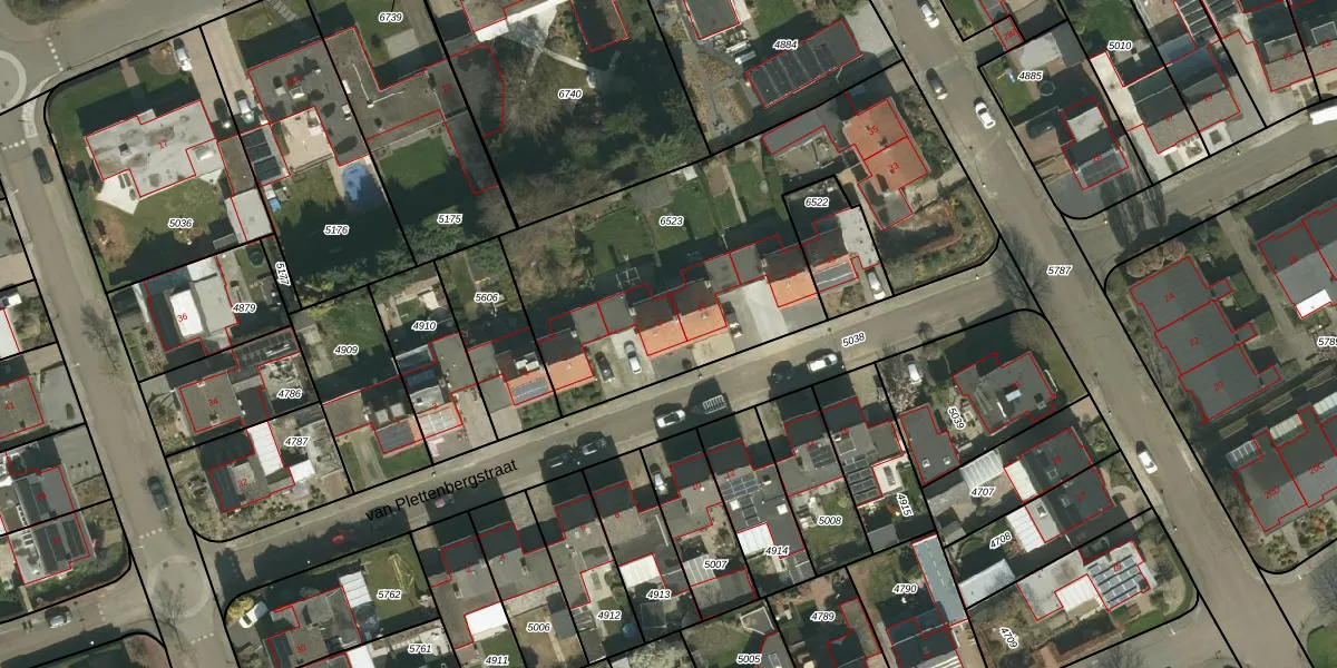 van Plettenbergstraat 9 is gelegen op kadastraal perceel MGT02A6523. Deze kadastrale aanduiding is uniek en wordt gebruikt door het Kadaster om eigendomsrechten en andere zakelijke rechten vast te leggen. Het perceel maakt onderdeel uit van de kadastrale gemeente Margraten.