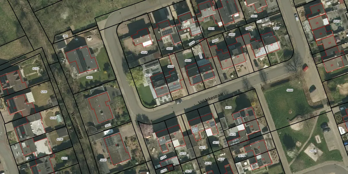 Veldekestraat 21 is gelegen op kadastraal perceel MGT02A5658. Deze kadastrale aanduiding is uniek en wordt gebruikt door het Kadaster om eigendomsrechten en andere zakelijke rechten vast te leggen. Het perceel maakt onderdeel uit van de kadastrale gemeente Margraten.