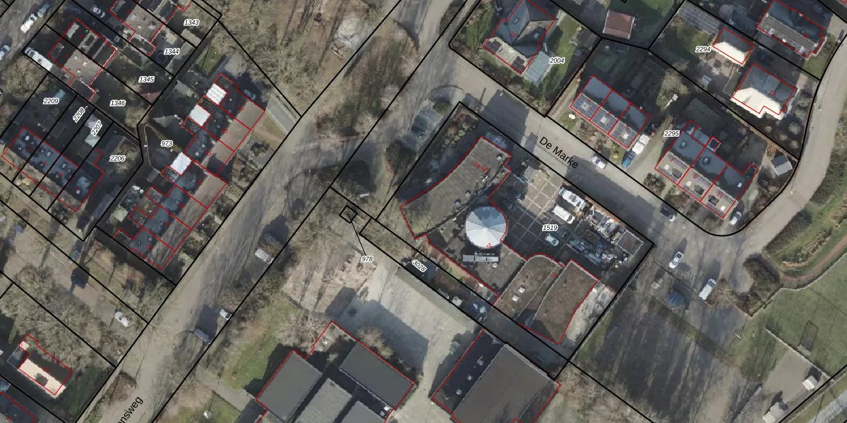 Het perceel waarop De Marke 2-d staat heeft een oppervlakte van 1940 m². Dit is een zeer groot perceel. De perceeloppervlakte wordt geregistreerd door het Kadaster. Gedetailleerde informatie over de maten van dit perceel kunt u vinden in het rapport Kadastrale kaart met maatvoering van De Marke 2-d.