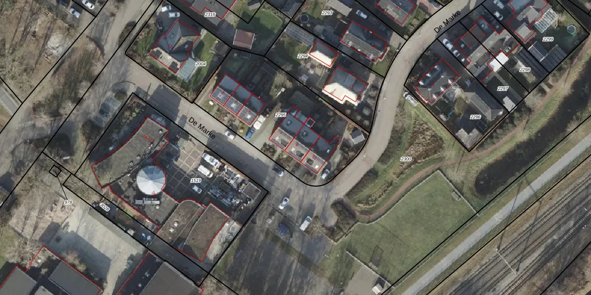 Het perceel waarop De Marke 9 staat heeft een oppervlakte van 1426 m². Dit is een zeer groot perceel. De perceeloppervlakte wordt geregistreerd door het Kadaster. Gedetailleerde informatie over de maten van dit perceel kunt u vinden in het rapport Kadastrale kaart met maatvoering van De Marke 9.