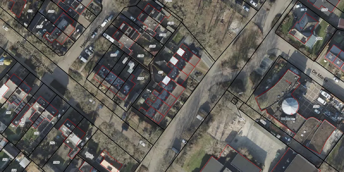 Het adres is gelegen op perceel 973 in de sectie AC en de kadastrale gemeente Ambt-Hardenberg. De kadastrale aanduiding is aldus HDB01-AC-973. Het perceel is 1460 m² groot. Dat is kleiner dan de gemiddelde perceeloppervlakte in Ambt-Hardenberg, dat op 7410,63 m² ligt. De grootste perceeloppervlakte in de kadastrale gemeente is 1,91 km². De kleinste oppervlakte bedraagt 0 m². Er zijn 7 adressen aanwezig op het perceel. In de Basisregistratie Kadaster (BRK) werden de grenzen van het perceel geregistreerd op 20-03-2007.
