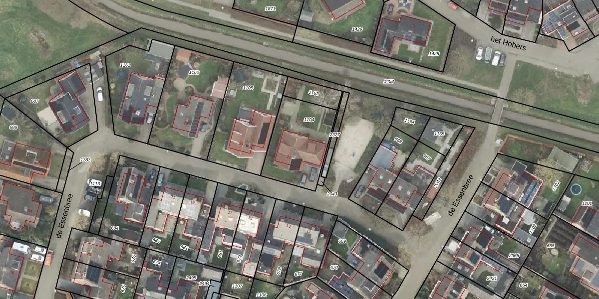 Het perceel waarop de Essenbree 22 staat heeft een oppervlakte van 532 m². Dit is een groot perceel. De perceeloppervlakte wordt geregistreerd door het Kadaster. Gedetailleerde informatie over de maten van dit perceel kunt u vinden in het rapport Kadastrale kaart met maatvoering van de Essenbree 22.