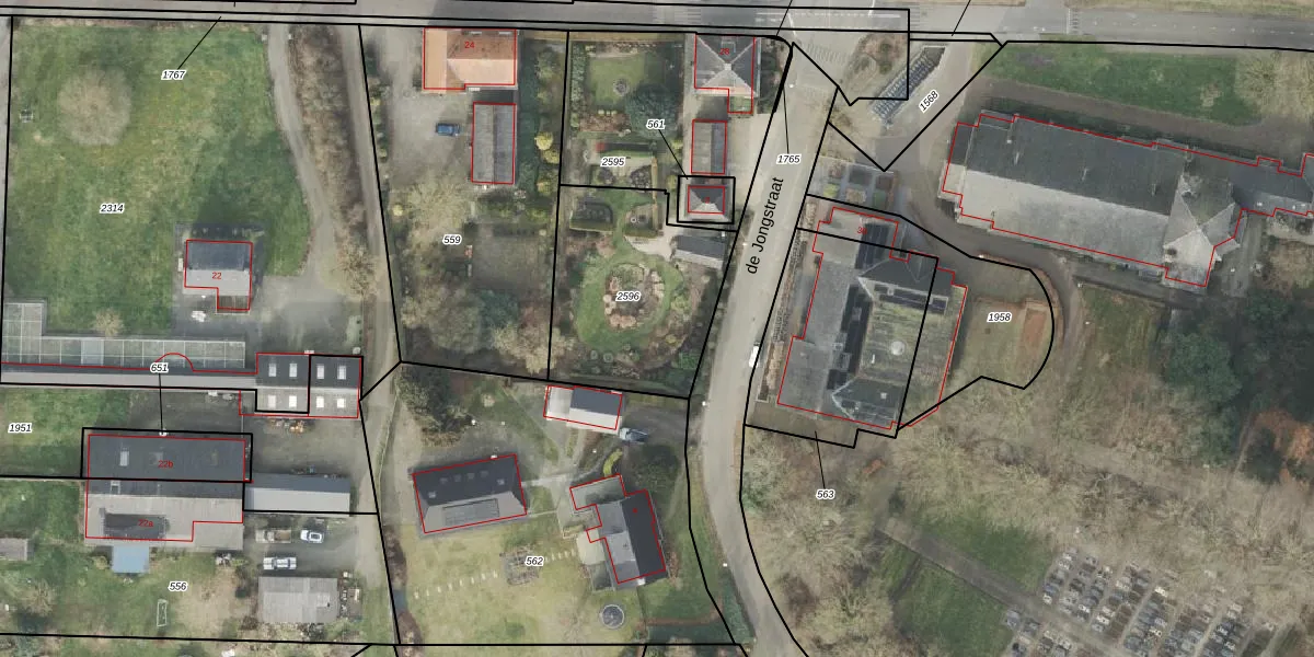Het perceel waarop de Jongstraat 2-a staat heeft een oppervlakte van 700 m². Dit is een groot perceel. De perceeloppervlakte wordt geregistreerd door het Kadaster. Gedetailleerde informatie over de maten van dit perceel kunt u vinden in het rapport Kadastrale kaart met maatvoering van de Jongstraat 2-a.