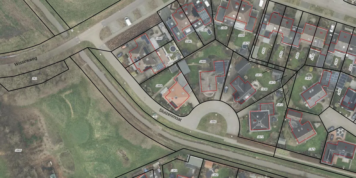 Het perceel waarop Sluizenmoat 5 staat heeft een oppervlakte van 547 m². Dit is een groot perceel. De perceeloppervlakte wordt geregistreerd door het Kadaster. Gedetailleerde informatie over de maten van dit perceel kunt u vinden in het rapport Kadastrale kaart met maatvoering van Sluizenmoat 5.