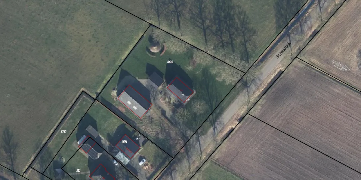 Het perceel waarop Scheiddijk 17 staat heeft een oppervlakte van 3205 m². Dit is een zeer groot perceel. De perceeloppervlakte wordt geregistreerd door het Kadaster. Gedetailleerde informatie over de maten van dit perceel kunt u vinden in het rapport Kadastrale kaart met maatvoering van Scheiddijk 17.