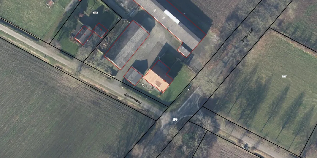 Het perceel waarop Scheiddijk 33 staat heeft een oppervlakte van 2,0 ha. Dit is een zeer groot perceel. De perceeloppervlakte wordt geregistreerd door het Kadaster. Gedetailleerde informatie over de maten van dit perceel kunt u vinden in het rapport Kadastrale kaart met maatvoering van Scheiddijk 33.