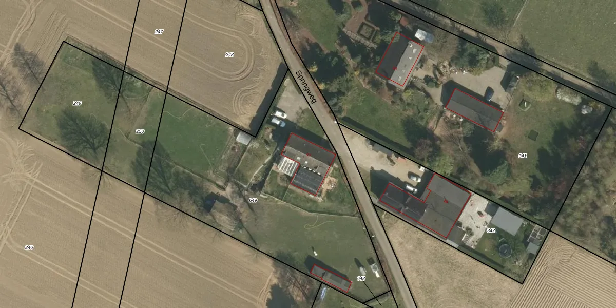 Het perceel waarop Springweg 47 staat heeft een oppervlakte van 2984 m². Dit is een zeer groot perceel. De perceeloppervlakte wordt geregistreerd door het Kadaster. Gedetailleerde informatie over de maten van dit perceel kunt u vinden in het rapport Kadastrale kaart met maatvoering van Springweg 47.