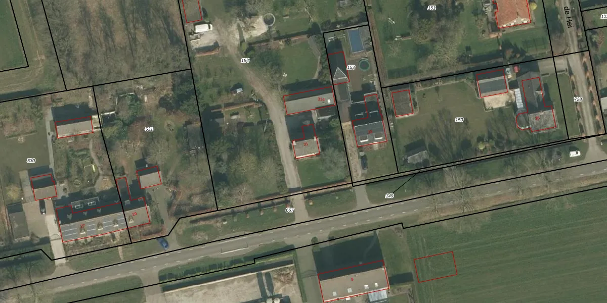 Het perceel waarop de Hei 31 staat heeft een oppervlakte van 3720 m². Dit is een zeer groot perceel. De perceeloppervlakte wordt geregistreerd door het Kadaster. Gedetailleerde informatie over de maten van dit perceel kunt u vinden in het rapport Kadastrale kaart met maatvoering van de Hei 31.