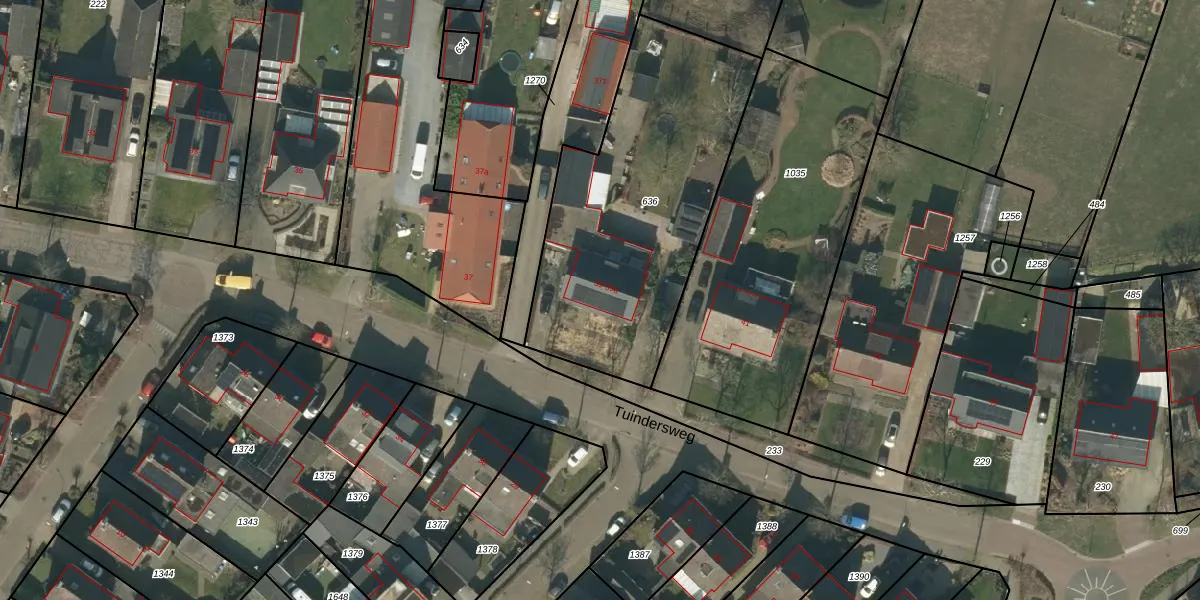 Tuindersweg 39 is gelegen op kadastraal perceel LHT00K636. Deze kadastrale aanduiding is uniek en wordt gebruikt door het Kadaster om eigendomsrechten en andere zakelijke rechten vast te leggen. Het perceel maakt onderdeel uit van de kadastrale gemeente Lieshout.